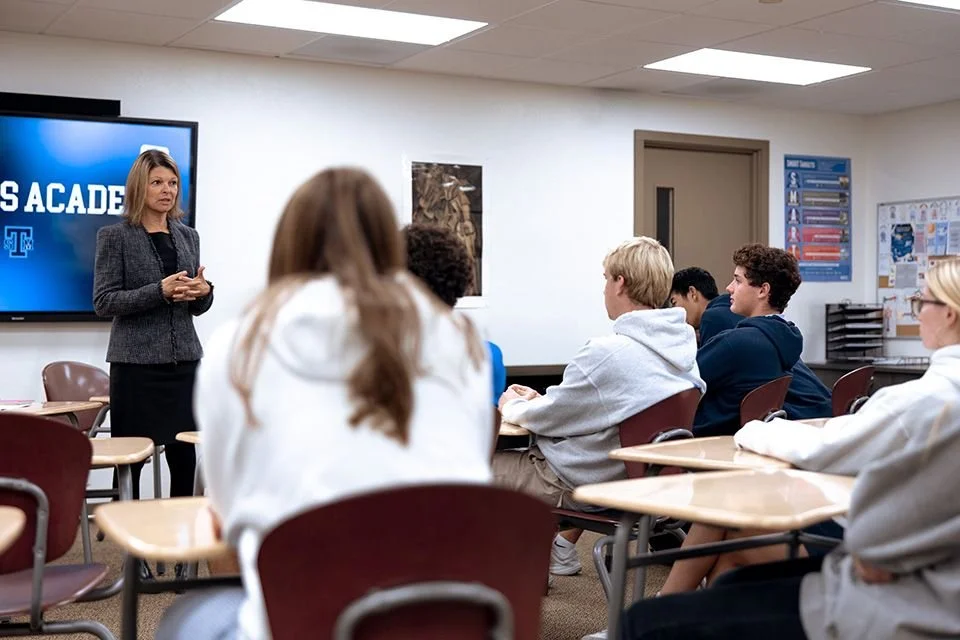 The student-athletes meet weekly during their season as part of their team-captain duties. The sessions are led by Mr. O’Shea and Mr. Markum, with occasional guest speakers—such as Head of School Dr. Jeneen Graham—sharing insight and encouraging discussion around the responsibilities of leadership and everything it entails.
